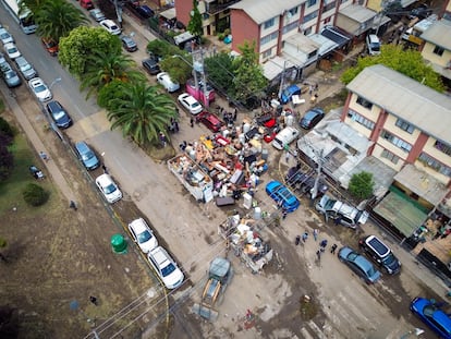 Los vecinos de Vallejo navegan por calles cubiertas de agua para recuperar televisores, neveras y otros electrodomésticos