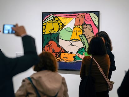 Una magnífica exposición en el museo madrileño recorre la ‘joie de vivre’ en la obra de la artista libanesa, un nombre ajeno a todos los circuitos que pintó obras llenas de orondas anatomías brindadas al gozo