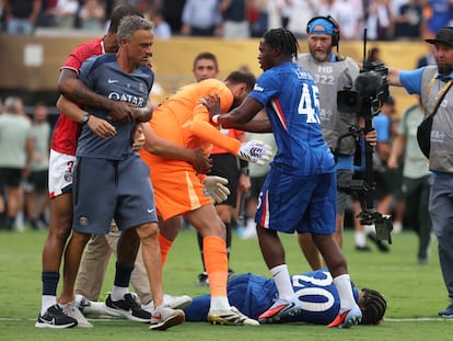 El presidente de los Estados Unidos asiste en el palco a la exhibición del Chelsea y a una bronca final en la que el entrenador del PSG lanza un manotazo a João Pedro
