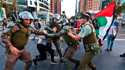 Una marcha convocada en solidaridad con Palestina, Venezuela y Ecuador, termina en enfrentamientos frente a la embajada de Estados Unidos