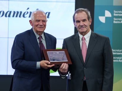 El exjefe de la diplomacia europea recibe en Madrid el primer premio al Compromiso con Iberoamérica, otorgado por la Secretaría General Iberoamericana