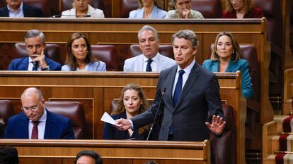 Sánchez habló más de una hora evitando la amnistía, y en cambio Feijóo solo habló de eso, pero tras días de protestas en la calle dominó la sesión la impepinable fuerza de los números de quien tiene la mayoría
