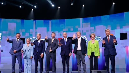 A menos de una semana de las elecciones, los ocho postulantes se presentan en un ‘cara a cara’ que se emite en los canales de televisión abierta del país