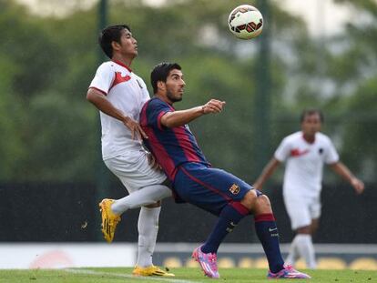 El delantero marca dos goles en el amistoso del filial ante la selección de Indonesia sub 19 ● Vermaelen, sin el alta médica, abre el marcador
