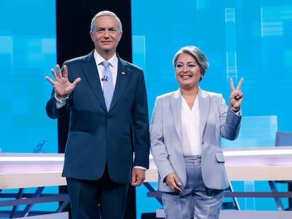 Los dos aspirantes a la Presidencia de Chile, que el domingo se miden en la segunda vuelta, sostienen un tenso debate televisivo, el último