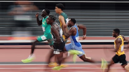 El ‘sprinter’ sudafricano opaca el debate jamaicano-estadounidense con una marca de 9,87s en las series de 100m