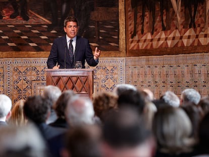 El presidente de la Generalitat opta por incidir en el debate identitario en su primer discurso de política general tras la dana. Rinde homenaje a las víctimas, mientras algunos familiares piden su dimisión a las puertas de Les Corts