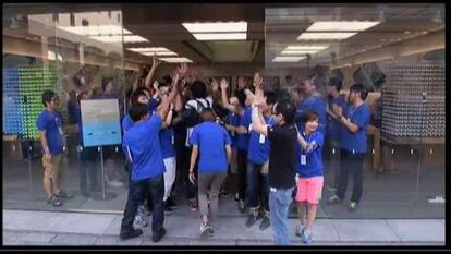 Un día antes, la cola ante la tienda de Apple en el barrio de Shibuya superaba el centenar de personas. Aguantaban la espera con sillas, libros y mantas. Abundaban los grupos, pero también las parejas y hasta personas solitarias.