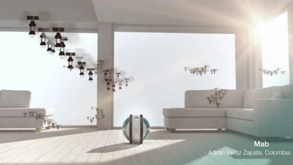 Mab, el minirobot pensado por Adrián Pérez (1990, Medellín, Colombia) ha ganado la undécima edición del concurso de diseño Electrolux Design Lab. Se trata de un sistema de limpieza autónomo integrado por cientos de minirobots voladores que se encargan de limpiar la superficie de los suelos, paredes u objetos con el contacto de gotas de agua que atrapan las partículas de suciedad.