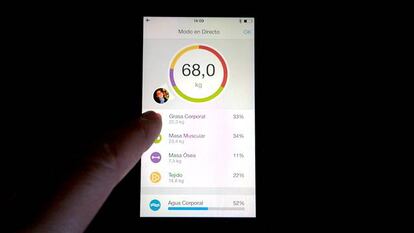 La combinación entre la aplicación, que por ahora solo funciona en los últimos modelos de iPhone e iPad, y la báscula entran dentro de la nueva hornada de aparatos que se conectan entre sí y se centran en el estado físico. Van un paso más allá de los relojes con pulso y GPS.