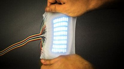 Un equipo de investigadores logra crear un dispositivo que puede estirarse hasta seis veces su tamaño original y emitir diferentes tipos de luz y de color