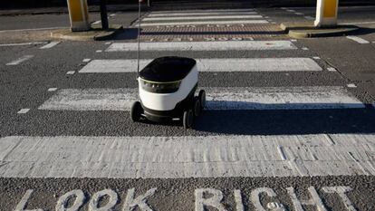 "Hay un robot en la puerta esperándole". Ese es el mensaje de texto que recibió en su móvil Simone, una ciudadana del barrio de Greenwich en Londres, el 1 de diciembre. Había pedido comida a domicilio en un local turco cercano a su casa a través de la aplicación de Just Eat. La sorpresa llegó a la hora de recibir el encargo: se había convertido en la primera persona del mundo en recibir un paquete "de manos" de un robot. "No me lo podía creer cuando abrí la puerta y lo vi esperando para saludarme. Parecía todo salido de una película", reconoció la mujer. Una situación que todavía hoy parece de ciencia ficción, pero que está cada vez más cerca de convertirse en habitual.