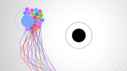Hay que ver lo que hubiera disfrutado Galileo con esta aplicación. Orbit es un juego para móviles que simula los efectos de la gravedad de los planetas. La dinámica consiste en ir lanzando planetas alrededor de uno o varios agujeros negros para conseguir que alcancen una órbita estable alrededor de ellos y sin que colisionen. Todo ello con una música tranquila y unos gráficos minimalistas que ofrecen un momento relajado mientras observamos las posibilidades gravitacionales de los cuerpos celestes.