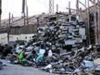 Estas teles van aparte por su potencial especialmente contaminador. El resto de residuos de aparatos eléctricos y electrónicos (RAEES) acaba en uno de los grandes contenedores. Se arrojan hacia una caída de dos metros que termina estruendosamente en un lecho picudo de electrónica y tripas informáticas.
