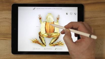 Otro de los puntos subrayados por Apple en sesiones posteriores es la posibilidad de desplegar la realidad aumentada. Como ejemplo pusieron una recreación de un valle donde se invita a los alumnos a poner una presa en diferentes espacios y ver sus resultados proyectándolo sobre la realidad y dibujos. Adquieren nociones sobre las estaciones, sus efectos y cómo el hombre lo modifica. Algo similar sucede con la disección de una rana sin necesidad bisturí, capa por capa y revisando tejidos, órganos y esqueleto con movimientos.