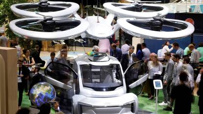 En el salón de nuevas tecnologías Viva Tech que se celebró esta semana en París, una maqueta a tamaño real atraía buena parte de la atención, la del Pop Up Next. El vehículo biplaza del consorcio europeo Airbus e Italdesign ha sido elaborado, en su última versión, junto con Audi y está concebido para desplazamientos tanto terrestres como aéreos. Lo más llamativo es el dispositivo de dron gigante que se puede acoplar por medio de un anclaje al techo del futurista coche, que se prevé pueda ser comercializado en siete o diez años.