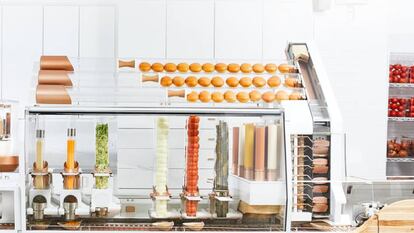 Los creadores de la empresa, que tienen previsto expandir con el modelo de franquicia, utilizan ingredientes franceses, italianos y escoceses (el salmón) para nutrir al robot, que realiza todo el proceso de forma inmediata. Esta es una de las principales diferencias con los procesos industriales, que elaboran productos para ser almacenados y distribuidos en plazos más largos a través de tiendas y supermercados.