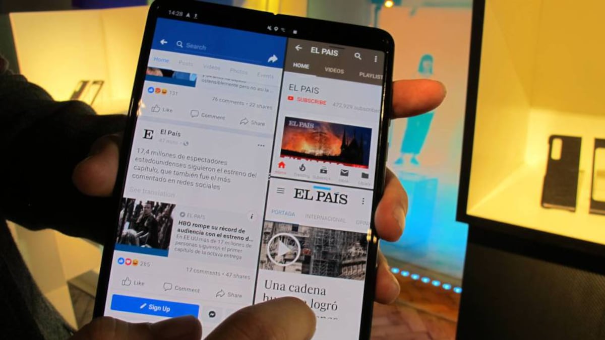 No es el primer teléfono flexible del mercado. Al igual que Samsung, varias compañías llevan años trabajando en el concepto. Royole ha lanzado su smartphone flexible FlexPai y Huawei prevé sacar a la venta su móvil con pantalla plegable Mate X a mediados de 2019. Pero el Galaxy Fold es el primer teléfono que se dobla de Samsung, uno de los gigantes tecnológicos con más ventas en el mercado. Hasta el momento, solo se había podido ver el dispositivo dentro de vitrinas en eventos como el congreso mundial de móviles, que tuvo lugar en Barcelona el pasado febrero. Ahora EL PAÍS ha podido tener un primer contacto con el móvil en un viaje a Londres al que ha sido invitado por Samsung.
