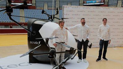 España se ha sumado a la carrera por diseñar el vehículo volador autopropulsado del futuro. En el mundo hay seis prototipos de aerotaxi, tres de ellos en Europa, que aún solo pueden funcionar de forma experimental. El centro de investigación Tecnalia, con sede en San Sebastián, ha presentado hoy el primer modelo de "taxi urbano aéreo", impulsado mediante drones, con capacidad para transportar a una persona y realizar desplazamientos de 15 kilómetros por una ciudad de forma autónoma y durante 15 minutos. "Aunque parezca ciencia ficción, no lo es. Estamos en el límite entre el presente y el futuro", ha afirmado este lunes Agustín Sáenz, subdirector general de Mercado de Tecnalia.