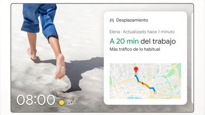 Por otro lado, cuando no se está utilizando es posible emplear la pantalla como reloj (ideal para una mesilla en el dormitorio) o a modo de marco digital. De hecho, es capaz de mostrar las fotografías de nuestros álbumes de Google Fotos, permitiendo elegir las carpetas de las que obtendremos esas imágenes. Es de agradecer que este servicio no esté supeditado a suscripciones de pago; algo que sí ocurre en los dispositivos similares de Amazon, que tienen ciertas limitaciones en este uso.