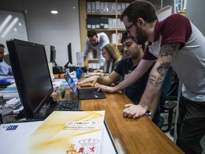 En el complejo policial de Madrid donde trabaja, Guerra tiene en su escritorio un equipo con cinco pantallas: "Las necesito", dice. Hay mucho servidor que controlar. El trabajo de Guerra consiste en ayudar a que sus colegas ciberpatrullen la dark web, como si pasearan por la web abierta. Prepara equipos "torificados", es decir, donde todas las conexiones se hacen a través de Tor, no solo la navegación sino también herramientas como DropBox, Skype o programas de ciberataques.