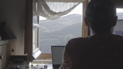La empinada carretera que sube a Trevijano de Cameros no tiene señalización horizontal ni vertical y hace años que no se arregla. Pero este verano, en este pequeño pueblo en la sierra de La Rioja se habla más de la falta de conexión a Internet que del mal estado de esos tres últimos kilómetros. El teletrabajo obligado por la crisis del coronavirus ha conseguido que algunos vean su segunda residencia allí como un lugar donde trasladar su oficina y poder pasar temporadas más largas. Pero las dificultades técnicas son mucho mayores que en una ciudad. La conexión de ADSL está limitada a tres megas y solo hay 15 líneas para todo el pueblo, las gruesas paredes de estas casas de piedra dificultan que pase cualquier señal y ni siquiera con el móvil se puede alcanzar una señal de 3G en muchos rincones.