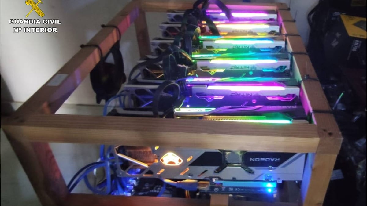 La Guardia Civil ha hallado una granja de minería de criptomonedas en un local anexo a una casa rural de Crevillent (Alicante) que usaba una conexión eléctrica ilegal. El consumo excesivo hizo sospechar al cuerpo armado, que pensó en un principio que se trataba de una plantación ilegal de marihuana, según la nota de prensa emitida este viernes.