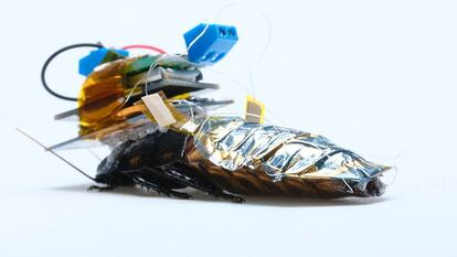 Publicado en la revista npj Flexible Electronics, el estudio ha usado la especie cucaracha silbante, presente en Madagascar. El motivo principal es su tamaño (mide de cinco a siete centímetros), lo que supone una superficie suficientemente grande como para insertar la pequeña celda solar y su mochila de control. Además, esta especie no tiene la capacidad de volar, lo que facilita su vigilancia. Y para que el insecto no tenga que cargar para siempre su equipaje, Fukuda ha afirmado a EL PAÍS que se le puede quitar el dispositivo: “Después de la misión, podemos retirarlo y hay posibilidades de que el insecto viva normalmente”.
