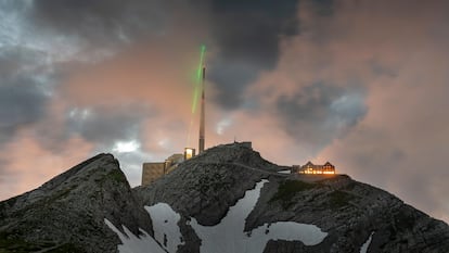 El dispositivo, del tamaño de un vehículo familiar grande, se ha probado en la montaña Säntis, en el noreste de Suiza, junto a una antena de telecomunicaciones de 123 metros de altura. “Es una torre que presenta la ventaja de ser impactada por rayos un centenar de veces al año y nos permite saber cuánta carga se transfiere desde la nube hasta la tierra”, comenta Marcos Rubinstein, físico de la Universidad de Ciencias Aplicadas de Lausana y también firmante del trabajo. El escenario era ideal para demostrar que el pararrayos láser es capaz de atrapar y redirigir la descarga hacia el cielo, evitando su impacto en las instalaciones.