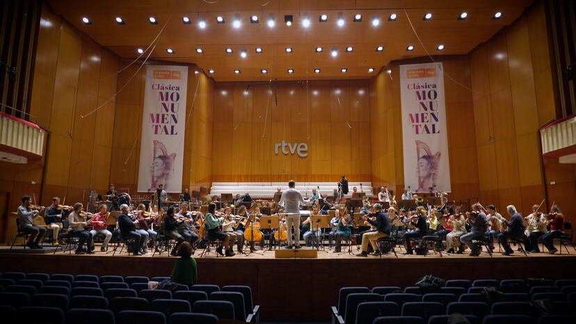 Las peticiones (o prompts) de los encargados de la orquesta y los periodistas de RTVE Lab fueron inicialmente ideas elaboradas, como se hace por ejemplo con las ilustraciones. Las propuestas aspiraban a que la máquina combinara compositores, géneros e instrumentos. Pero la IA producía sonidos desordenados, como un puzle ingobernable. El primer día de pruebas, el pasado septiembre en pleno escenario del Teatro Monumental, ya marcó que no iba a ser sencillo: “Esto es más Indiana Jones”, “aquí hay influencias reguetoneras”, “esto no es una fuga” o “no entiende ese lenguaje” fueron algunos de los comentarios de aquella sesión.
