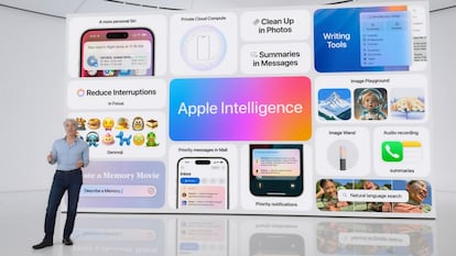 Tras casi dos años de espera, Apple finalmente se ha subido al tren de la inteligencia artificial (IA) generativa, con las grandes novedades que anunció el consejero delegado de la compañía, Tim Cook, en la presentación de su Conferencia Mundial de Desarrolladores (WWDC). En palabras del propio Cook al arrancar su intervención, “estoy emocionado con las nuevas y profundas capacidades que vamos a presentar, que esperamos que hagan a nuestros dispositivos más inteligentes y útiles que nunca”. Sin embargo, los detalles que dio más tarde Apple en la keynote y en su página web limitan y matizan el alcance de ese salto tecnológico, que solo estará al alcance de los actuales usuarios de iPhone que tengan uno de los dos modelos más potentes —el 15 Pro y el 15 Pro Max—, y que en 2024 solo llegarán a quien hable y escriba en inglés de EE UU.