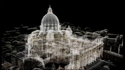 En una ciudad de Roma que sigue inmersa en los preparativos para el Jubileo de 2025, las obras complican más de lo habitual el tráfico en el casco histórico, donde los andamios ensombrecen aún la visita a lugares emblemáticos como la Fontana di Trevi o la Piazza Navona. Mientras tanto, el Vaticano ultima un lavado de cara inédito para el ya reluciente epicentro de esas celebraciones, la Basílica de San Pedro. Es una restauración tecnológica, que ha utilizado inteligencia artificial generativa para crear por primera vez una réplica digital de la basílica. Y con ella, el Estado pontificio aspira a ofrecer “una nueva experiencia espiritual”, en palabras del padre Enzo Fortunato, que ha participado en el proyecto desde la Fabbrica, la institución papal responsable de la conservación del monumental edificio.