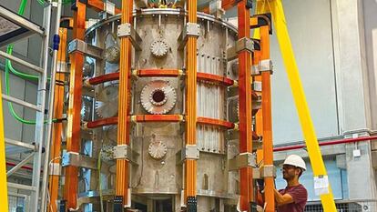 El avance no solo se produce dos años antes de lo planeado, sino que el resultado de este estreno es mejor del previsto. “La longitud del pulso [la duración de un incremento significativo en la potencia del reactor] se ha prolongado dos veces más de lo que esperábamos”. Se preveía medio segundo (habrían sido suficientes milisegundos para dar por superada la prueba), pero alcanzó el doble de ese tiempo y, según explica García Muñoz, es importante porque se han mantenido los campos magnéticos que confinan el plasma en el tokamak y el dispositivo ha soportado el estrés térmico sin afectación significativa.