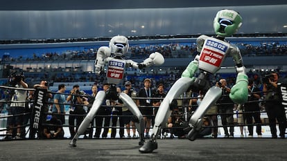 En los pasillos del Óvalo Nacional de Patinaje de Velocidad —que fue sede olímpica en los Juegos de Invierno de Pekín 2022—, donde se ha celebrado el evento robótico, varios grupos de estudiantes medían las habilidades de sus creaciones robóticas en torneos de baloncesto o boxeo. Cuatro alumnos de segundo y tercero de la Universidad de Ciencia y Tecnología de Jiangxi explicaban muy emocionados a este diario lo que para ellos ha supuesto viajar a Pekín. “Es una oportunidad excelente para probar la fiabilidad de nuestro hardware y del algoritmo”, aseguraba el más parlanchín, apellidado Shen. Todos creen que los robots trabajarán para los humanos en el futuro. “Ahora los vemos haciendo deporte, pero el objetivo es entrenarlos para que sean capaces de realizar cualquier tipo de actividad diaria”, añade Shen.
