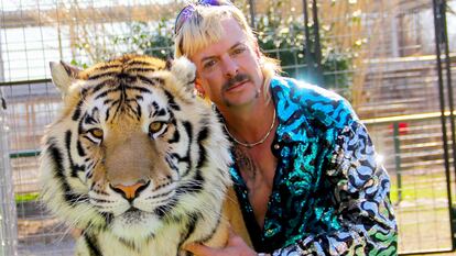 Tiger King es una serie documental sobre animales salvajes de cuatro y, sobre todo, de dos patas. Pocas ficciones resultarían verosímiles con el grado de sordidez, esperpento, corrupción y soterrada violencia que transita por los siete capítulos dirigidos por Eric Goode y Rebecca Chaiklin para Netflix. Por un lado, están los cuadrúpedos: tigres, leones, leopardos, panteras o pumas en un país que, según denuncia el propio documental, tiene en cautiverio más felinos de los que existen en el resto del mundo en libertad. Por el otro, los bípedos: una serie de personajes que ni el más fantasioso guionista lograría imaginar y en el que se mezclan gurús de zoos que funcionan como sectas, una rica animalista de pelo rubio y oscuro pasado que solo se viste con animal print, exconvinctos dispuestos a matar por un plato de lentejas, soplones del FBI o empresarios de poca monta que usan a cachorros de tigres para meter a chicas guapas y prostitutas en su cama.