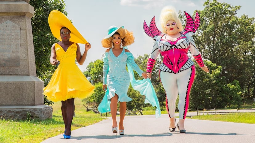 Tres exconcursantes del reality RuPaul, reinas del Drag y un país por descubrir. Cuando Bob the Drag Queen, Eureka O’Hara y Shangela Laquifa Wadley llegan con sus maquillajes, pelucas y vestidos de tamaño XXL a Gettysburg (Pensilvania), la demografía de este pueblo estadounidense de 7.633 habitantes da un giro importante. No son precisamente banderas arcoíris las que están esperando a las nuevas habitantes, sino los colores de la bandera confederada, símbolo de la esclavitud y la supremacía blanca. Su misión durante los seis capítulos del programa We’re Here (Aquí estamos), que ya puede verse en HBO España, es reclutar a personas de todo género, edad e ideología para subirlas sobre un escenario y montar con ellas un espectáculo de transformismo en lo que puede entenderse como la América profunda. O la América de Donald Trump.