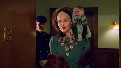 Ginger Rogers acababa con los pies ensangrentados tras bailar durante horas en tacones y la espalda empapada por los calurosos y pesados vestidos de gala. Pero siempre se consideró a Fred Astaire el genio de la pareja. El compañero con el que Stone tiene más escenas en Ratched es un mono, que la acompaña allá donde va vestido con atuendos a juego con los de su dueña. “Cuando llegaba por las mañanas, el mono venía a abrazarme durante cinco minutos y a hablarme al oído” recuerda. Solo Ryan Murphy podría conseguir que Sharon Stone imite los ruidos de un mono durante una entrevista. “Al final se ponía a acicalarme. Se sentaba conmigo y se aseguraba de que tuviera buen aspecto. A veces lo abrazaba como a un bebé y otras se ponía a corretear jugando a mi alrededor. Pero siempre quería estar conmigo antes del trabajo. Estábamos conectados de una forma primitiva, emocional. Su adiestrador le instruía lo que debía hacer y al terminar la escena yo le indicaba si lo había hecho bien o que, si no le había salido bien, no pasaba nada”. Al parecer se ha entendido mejor con él que con la mayoría de sus compañeros de reparto de los noventa.