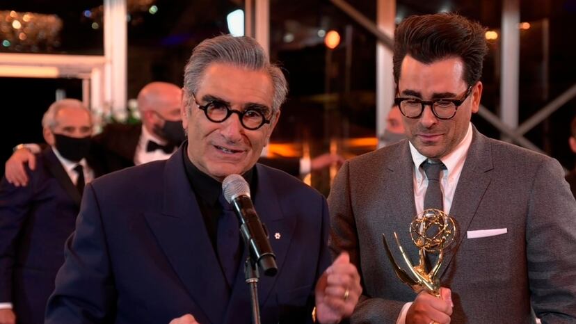 Había pasado una hora de programa y solo se había nombrado una serie: Schitt’s Creek. La sexta temporada de esta producción canadiense creada por Daniel Levy y protagonizada por su padre, Eugene Levy, y Catherine O’Hara hizo historia en estos premios. Durante toda esa hora de ceremonia, la serie se llevó los siete premios de comedia (mejor comedia, director, guion y los cuatro intérpretes). Nunca había pasado antes.