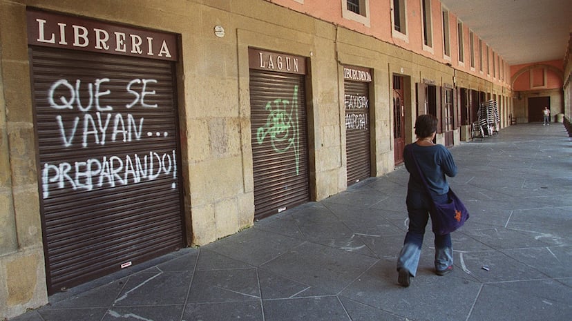 Esa carta también la firma José Ramón Recalde, marido de la fundadora de Lagun María Teresa Castells, jurista, profesor y político. Después de ver el estado de la librería en Nochebuena de 1996, se encontró tres semanas después con un nuevo ataque; los agresores rompieron el escaparate nuevo, cogieron parte de los nuevos y los viejos libros, y los quemaron en la calle. Quien buscase correspondencias políticas en la Europa del siglo XX y le diese pudor aún emprender comparaciones, tenía en aquella hoguera al rey desnudo: totalitarismo, amenazas, terror, asesinato del disidente —daba igual de lo que disentiese—, chantaje y rechazo a la cultura, la pluralidad y las ideas. “Lo curioso es que siempre que rompían el escaparate y cogían libros para quemarlos, pintarlos o romperlos, solían coger los primeros, que eran los diccionarios de euskera, que los teníamos siempre colocados allí”, cuenta Latierro en el documental. “Lagun es Fort Apache”, sentenció Ramón Jáuregui.