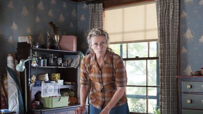 Las dos primeras escenas de Olive Kitteridge son un intento de suicido y un pequeño desplante doméstico, y lo más triste es el desplante. La serie, disponible en HBO España, abre con los pasos firmes, decididos, de una mujer por un áspero campo de Nueva Inglaterra. Si un andar puede ser testarudo, eso serían. Al llegar a un descampado, y con la misma resolución, Olive Kitteridge posa en el suelo una manta de lana y una pistola. Se ha traído una radio portátil, por la que ahora suena, enlatada, música barroca. Tras quitarle el seguro a la pistola, levanta la mirada. Hay brisa, los árboles no tienen ni una hoja, los pájaros rechinan a lo suyo, y el gesto de Olive cambia ligeramente. Algo conmovedor hay entre tanta hostilidad.