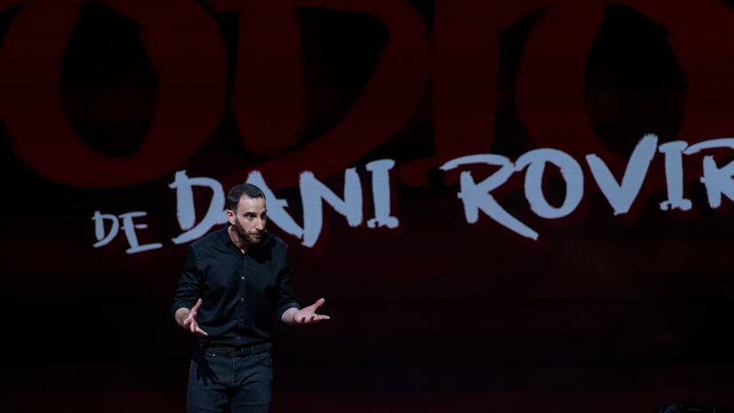 Odio es un monólogo que tiene ya dos años de antigüedad y que Rovira dejó de representar en directo por causas ajenas a él. Primero la pandemia y luego un linfoma de Hodgkin, con sus consiguientes sesiones de quimioterapia y radioterapia, pausaron su vida. Ahora lo ha recuperado con algún retoque. “El texto es el mismo de hace dos años, desde antes de la III Guerra Mundial”, bromea, “lo que pasa es que como ha pasado todo lo que ha pasado, había factores que yo tenía que mencionar en algún momento, no iba a hacer un espectáculo como si nada hubiera ocurrido. En el primer bloque hay un elefante en la habitación, que tenía que mencionar. En cinco minutitos me pude quitar el hecho de que ha pasado una pandemia, de que he pasado lo que he pasado y a partir de ahí el texto es prácticamente el mismo. Es verdad que ahora, de manera casi mágica o de serendipia, tiene mucho más sentido que hace dos años, yo mismo hasta me asusté cuando empecé a tirarlo”.