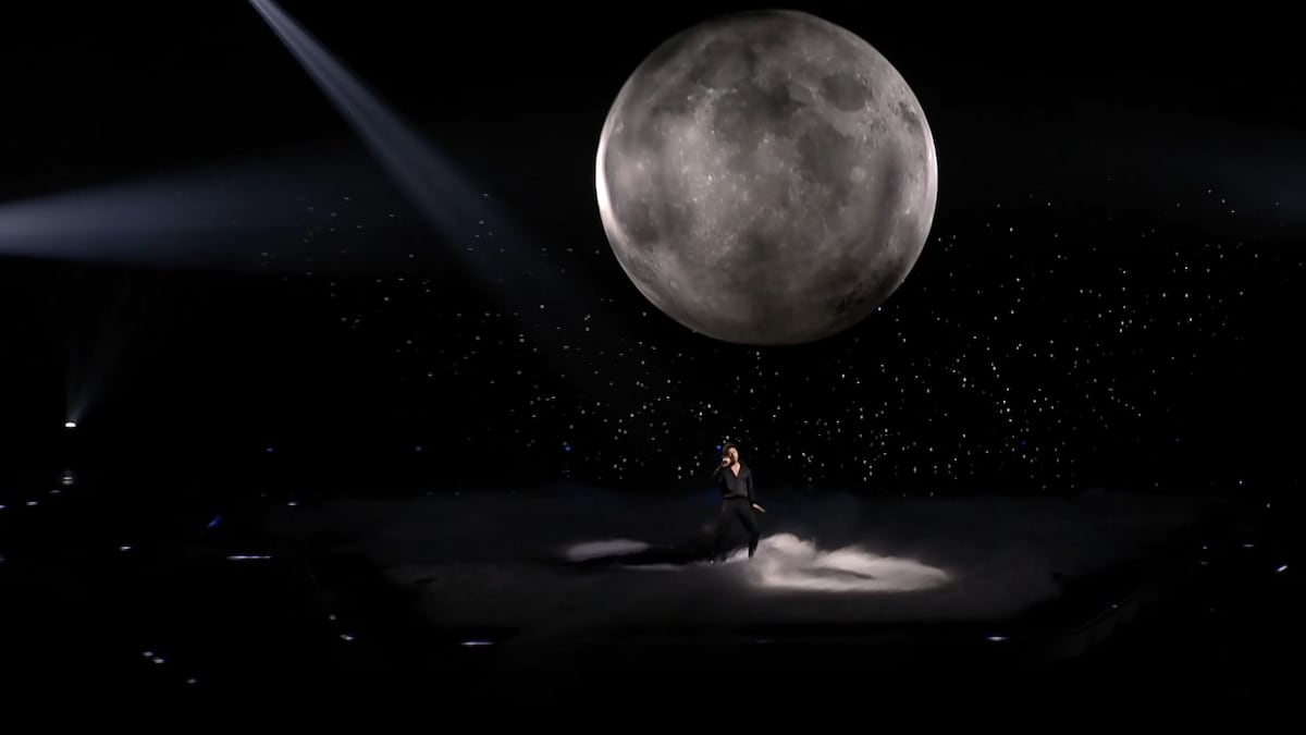 El elegido por RTVE para salir al escenario eurovisivo ha interpretado su poderosa balada ante una gigantesca luna como principal elemento de su escenografía. Completamente vestido de negro, el cantante se ha mimetizado con el fondo estrellado que ha acompañado a su tema en directo.
