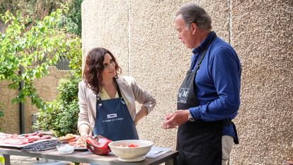 Y llegó la comida, porque en la casa de Bertín, además de sufrir, se cocina. Ayuso presentó dos buenos chuletones de la sierra de Guadarrama, hortalizas de la huerta de la sierra y fresones de Aranjuez. “Lo que más me gusta del mundo son los rábanos”, dijo Bertín tras observar todo lo que había en la mesa. “¡Ah!, mira”, contestó Ayuso, como diciendo “te traigo dos chuletones y me coges rábanos, tiene narices”. Y se sentaron en la mesa: