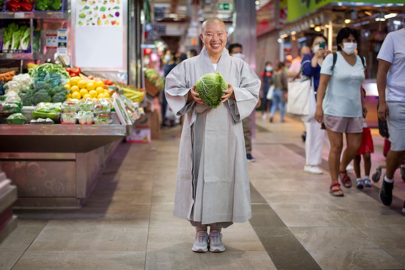 Los alimentos presentes en los puestos también le han impactado, pero por diferentes razones. “Aunque son productos animales, la manera de conservación es la misma, como salar o encurtir, que hacemos con las verduras en el templo”, indica Kwan, que es vegana, como buena parte de los religiosos del budismo y admite cierta incomodidad ante la presencia de jamones y embutidos. “Ahora que tengo más experiencia y he conocido más gente tengo una mayor empatía a la cultura gastronómica de cada país, pero siempre pensando en el respeto a los animales y sin generar desperdicios”, comenta la monja, que no usa tampoco ajo o puerro cuando cocina en el templo, y añade que si no puede evitarse el consumo de carnes, al menos se ha de procurar que tenga un “origen natural”. En resumen, evitar daños y gastos innecesarios. “Lo más importante es respetar a los seres vivos”, resume la religiosa, quien considera que la crisis del coronavirus ha traído mayor conciencia sobre qué y cómo se come. “Yo creo que va a ser un cambio más duradero porque nadie esperaba esta situación. Esto nos hace reevaluar el pasado y nos lleva a la búsqueda de una vida más natural”.