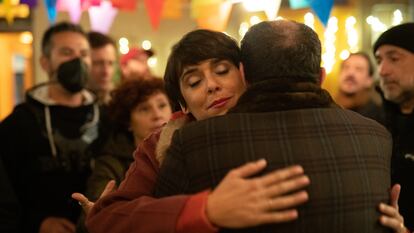 Al fondo de la conversación, Elejalde está rodando con Candela Peña y Carlos Areces, en un momento en el que su personaje decide por fin abrazar a sus amigos sin miedo. La imagen funciona como un espejo para el equipo técnico y artístico, en donde hay igualmente abrazos tras muchos meses de tensión y con la variante ómicron del coronavirus sin haber aparecido todavía en las noticias.