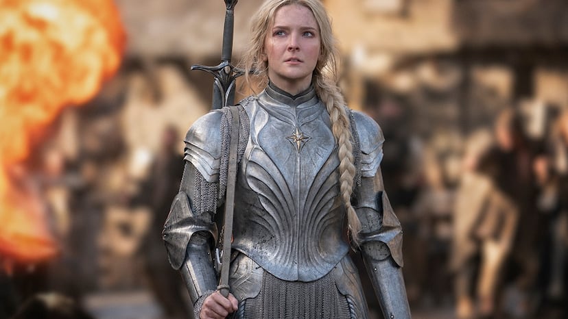 La gran protagonista de la serie es la elfa Galadriel, ese remedo tolkiniano de la Virgen María con orejas puntiagudas que encarnaba en el cine Cate Blanchett. Aquí, mucho más suelta, la vemos al inicio de niña, cuando ya apunta maneras y se pregunta por la bondad y la maldad, la luz y la oscuridad. Y ya de joven guerrera (la bellísima y expresiva Morfydd Clark), comandante de los ejércitos de las tierras yermas (un título con tanta sonoridad como el del general Máximo Décimo Meridio en Gladiator). Estamos en una época tras la guerra contra Morgoth el Gran Enemigo de la luz, al que se logró derrotar con gran esfuerzo y muchas pérdidas, como la del hermano mayor de Galadriel. Los elfos, se nos cuenta con gran ortodoxia tolkiniana, dejaron Valinor, su patria cuasi celestial, y viajaron por mar hasta la Tierra Media para combatir el Mal en feroces combates de los que se nos ofrecen imágenes apocalípticas con dragones que caen en llamas sobre masas de guerreros (la sombra de Juego de tronos es tan alargada como la de Sauron). Morgoth, pues, cayó vencido, pero su lugarteniente, Sauron precisamente, “un hechicero cruel y astuto”, escapó. Galadriel, luchadora magnífica con espada, le rastrea en los helados confines de la Tierra Media, en fortalezas oscuras y bastiones abandonados, para vengar a su hermano y extirpar el Mal. Unas secuencias impresionantes.