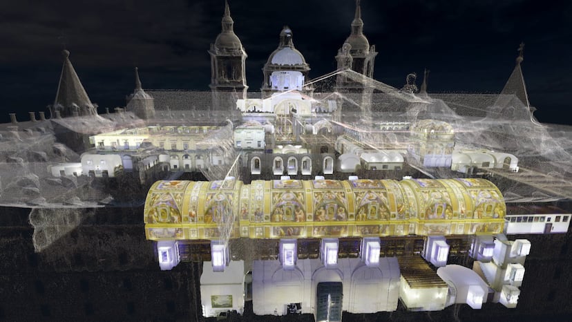 El espectador ve el edificio como si de un videojuego se tratara —el programa de digitalización es muy parecido a jugar a Los Sims—. El escáner no capta una imagen, sino millones de puntos geolocalizados que luego reproduce en un ordenador y crean el volumen del edificio, en este caso, el Pardo. De esta forma, como entre los puntos no existe nada, la cámara puede atravesar cualquier pared o elemento y sitúa cada habitación en su contexto. “La gente que ve nuestros capítulos ya no visita los monumentos como antes, ahora los entienden espacialmente”, asegura el productor ejecutivo Antonio López Pulido.