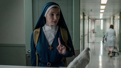 Mrs. Davis, una sola temporada de ocho capítulos en HBO Max, ya roza el delirio más absoluto. Y lo hace con tanta gracia y tan pocos complejos, que una vez que te das cuenta de que todo es posible resulta difícil dejar de verla. El argumento es tan raro como fácil de explicar. En un futuro cercano, una monja, Simone (Betty Gilpin), pretende acabar con una inteligencia artificial que domina el mundo. Esa inteligencia artificial, Mrs. Davis, parece ser pura bondad. A través de una app hace la vida de todo el mundo más fácil y ha acabado con el hambre y las guerras. Pero su omnipresencia ha despojado a los humanos de toda capacidad de decisión, los ha convertido en monigotes. Algunos, los menos, se resisten a su influjo. Pero el motivo de Simone es más personal: la culpa de la muerte de su padre.