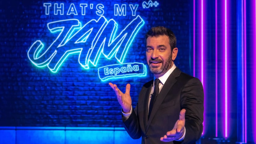 A las afueras de Madrid se alinean en una misma calle naves gigantes que son recintos de rodaje. En uno de ellos se ha grabado desde febrero That´s My Jam España, la adaptación del programa de la cadena NBC que presenta y produce Jimmy Fallon, en el que dos parejas de famosos ponen a prueba sus habilidades y conocimientos musicales. En la televisión hay muchos trucos visuales para que los espacios reducidos ganen profundidad, pero este es realmente un plató de gran formato. “Es un alarde escenográfico y además igual al original”, apunta Arturo Valls, sonrisa perenne. La versión española del programa de Fallon, que enfrentará a famosos en una competición basada en la música, se estrena en Movistar Plus+ el 2 de octubre, con Valls como presentador y coproductor, junto a la plataforma y a LaCoproductora.