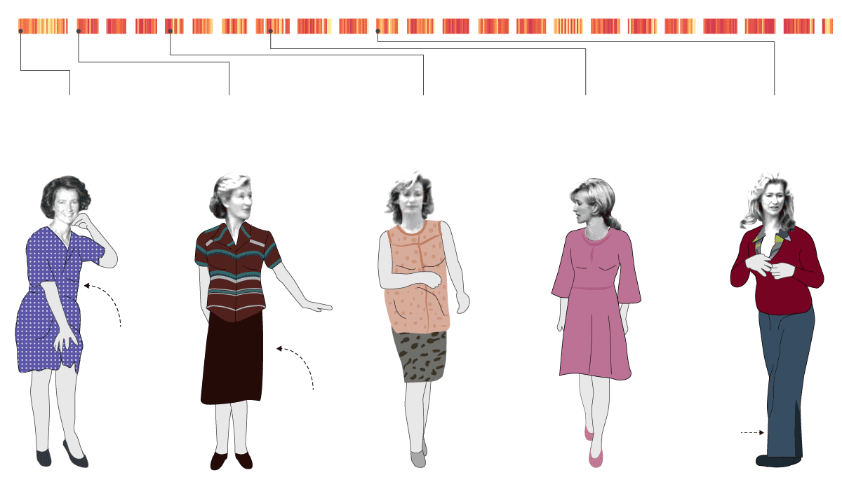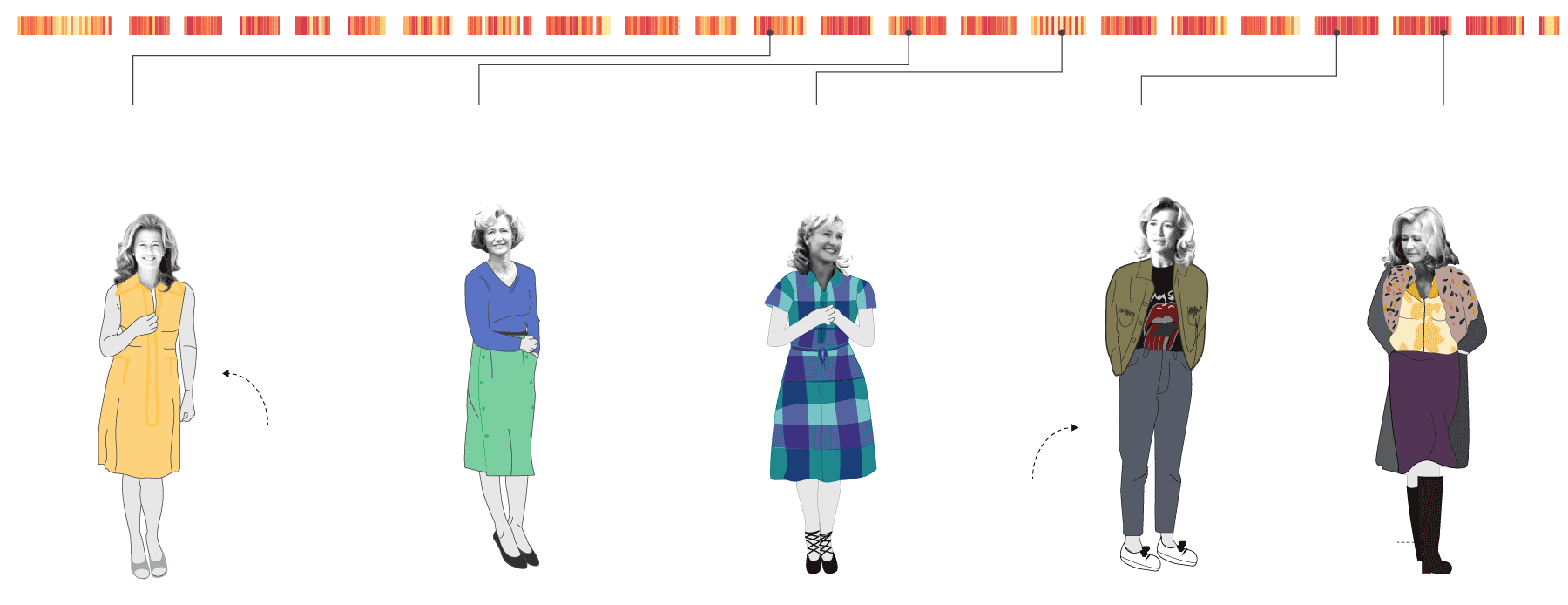 Tras procesar todos los subtítulos de las 23 temporadas de la serie (512 horas de emisión), hemos elaborado un mapa en el que la familia Alcántara y, en especial, Antonio y Mercedes, acumulan el mayor número de menciones cada capítulo: “Son los protagonistas indiscutibles de la serie. Salen en todos los capítulos y en todos tienen trama. El tercero en liza es Carlos, que es nuestro narrador”, precisa Delgado. Hay otros personajes que no siempre tienen trama, pero cuya presencia es “definitiva”, apunta el guionista: “Es el caso de Herminia, que es la memoria de la familia y la que siempre tiene los pies en el suelo. Su visión sobre lo que les pasa a los demás es esencial”.